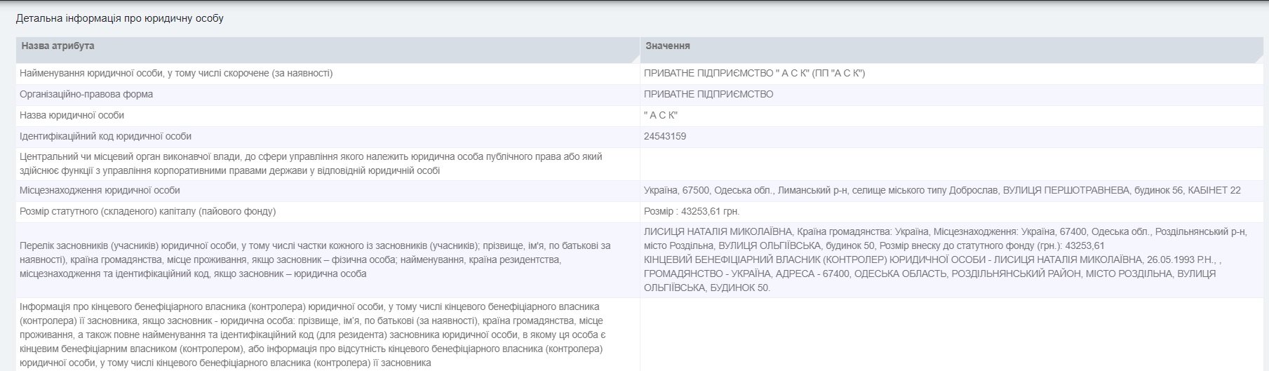 Согласно единому реестру юридических лиц директором ЧП «АСК» является Наталья Лисица, она же и единственный владелец ЧП.