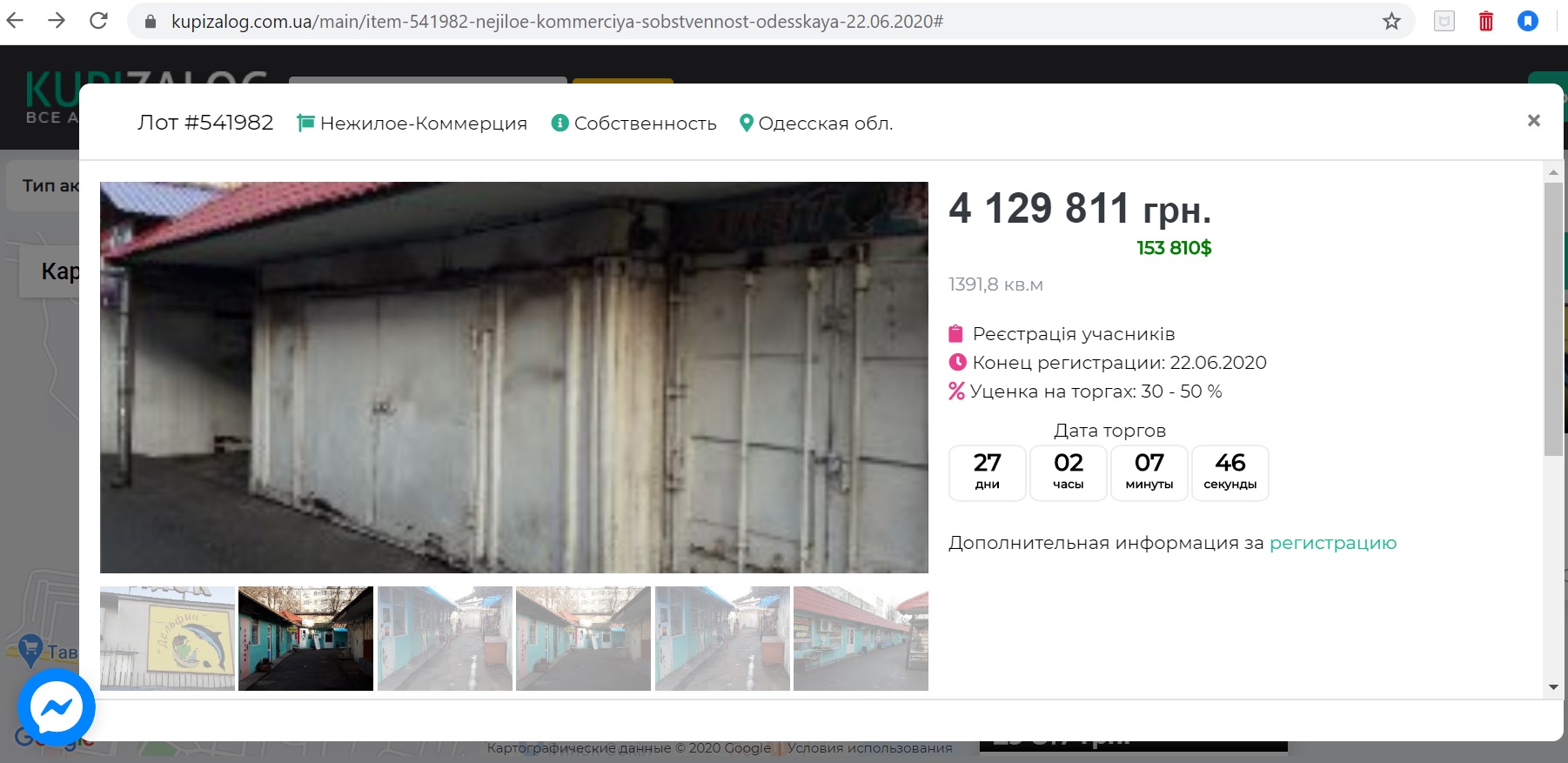 Объявление о продаже рынка «Дельфин», который находится в центре Черноморска, появилось на сайте-аукционе Kupizalog.