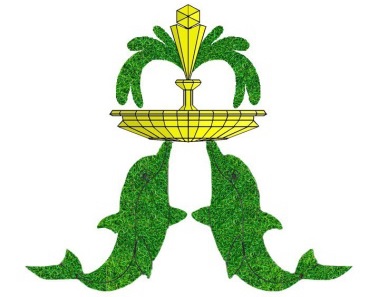 Также, среди всего прочего, планируется установить инсталляцию из искусственной травы на металлическом каркасе в виде дельфинов с металлической чашей и гранями в виде фонтана, окрашенного под золото.