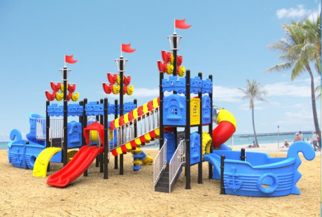 Планируется установка двух площадок: игрового комплекса из одной двойной горки, одной прямой горки, одной поворотной горки и винтовой открытой горки. Двух металлических лестниц с закрытыми ступенями что предупреждает попадание ноги ребенка между ступенями и перилами. В составе комплекса также должен быть канатный лаз из армированного каната по которому ребенок может добраться второго этажа, и еще два лазательных элемента. Три парусные стойки и с двух сторон два носа корабля.