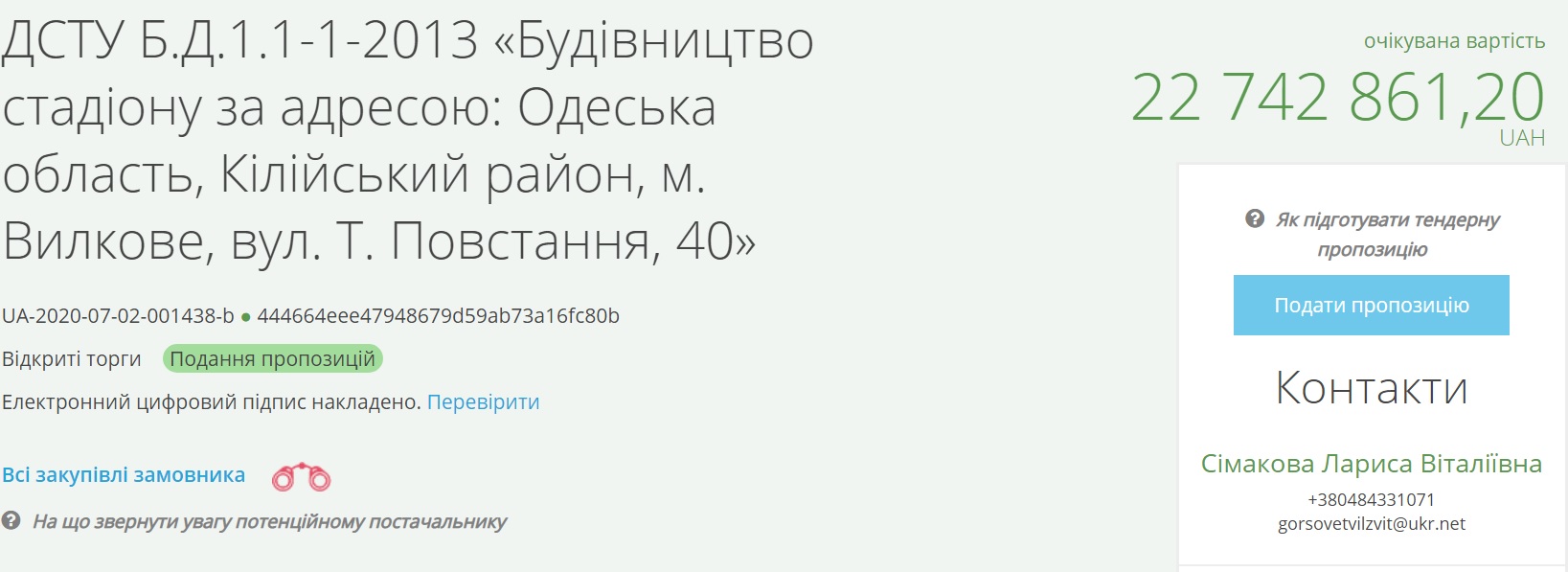 Исполнительный комитет Вилковского городского совета Килийского района Одесской области объявил тендер для выбора компании, которая построит стадион.