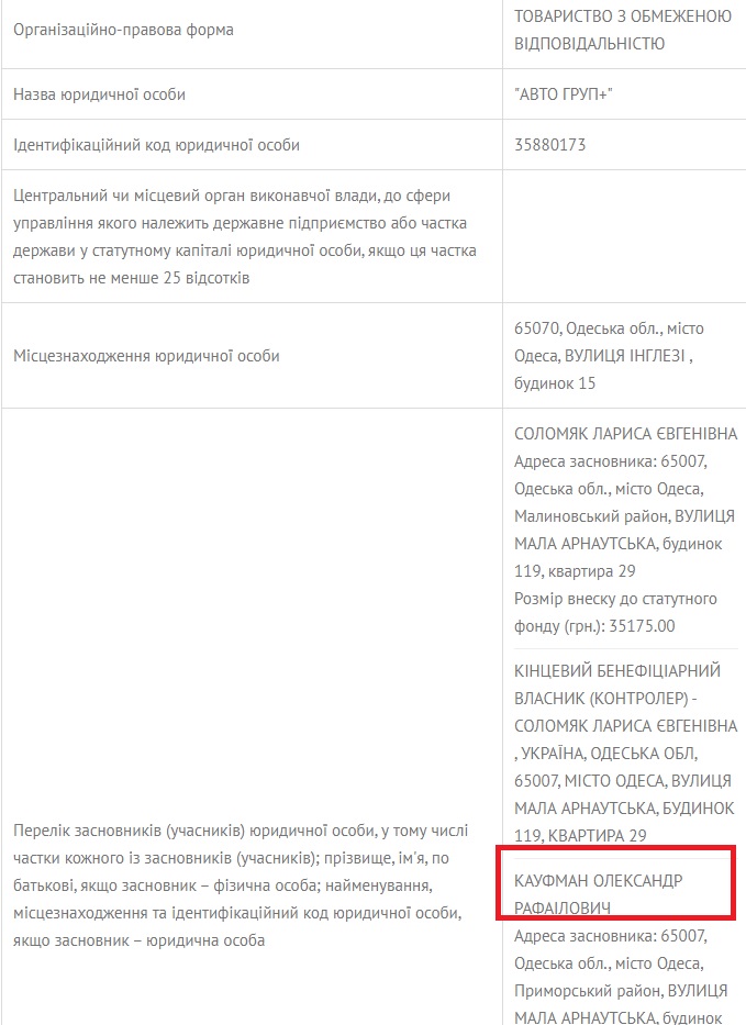Компания должна будет поставить Renault Trafic или эквивалент до 31 августа. Конечными бенефициарами ООО «Авто Групп+», являются Лариса Соломяк и Александр Кауфман.