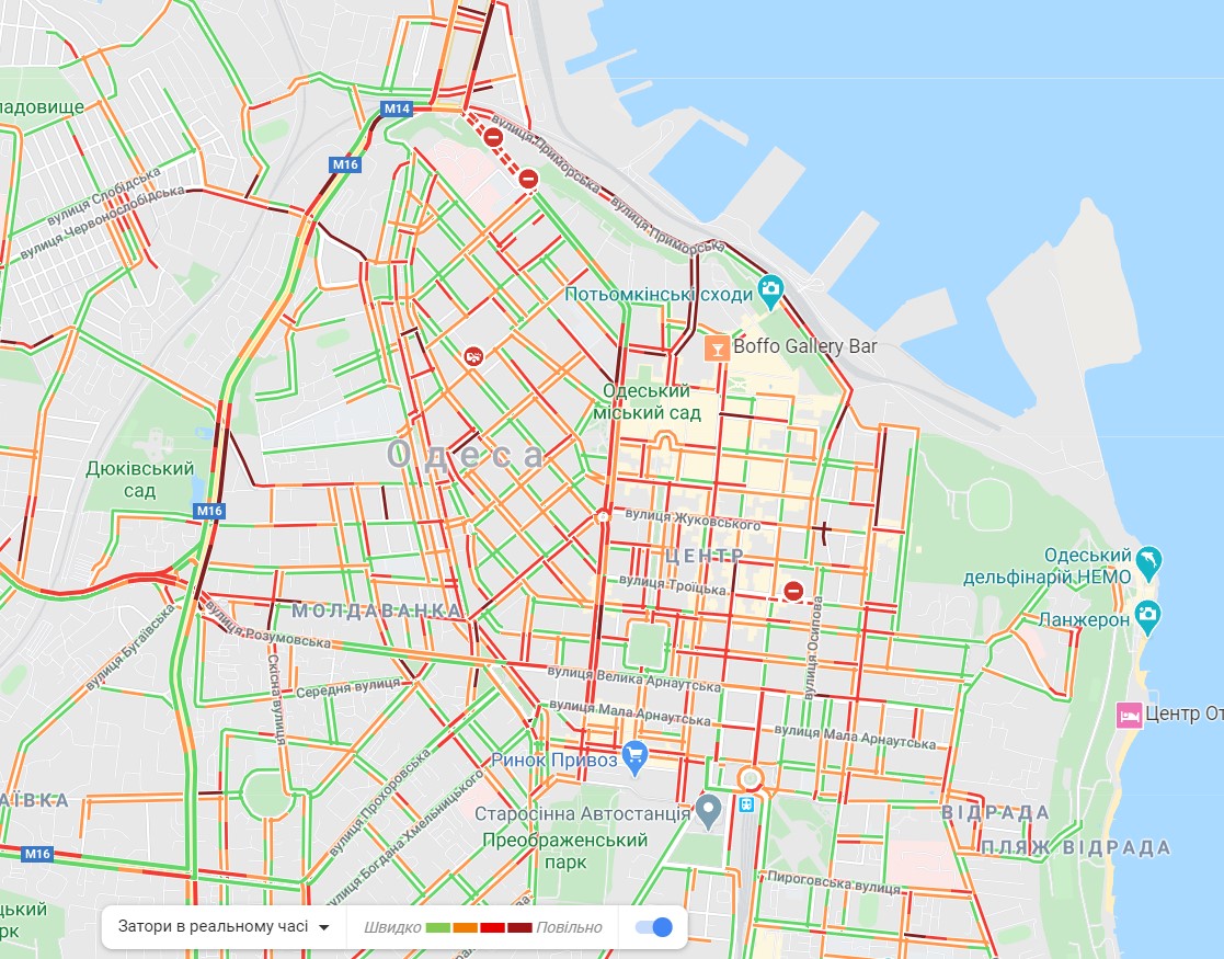 В частности, подтопило улицу Балковскую и Хаджибейсккую дорогу, из-за чего перестали ходить трамваи №15, №20 и №22. Также весь центр Одессы застыл в пробках.
