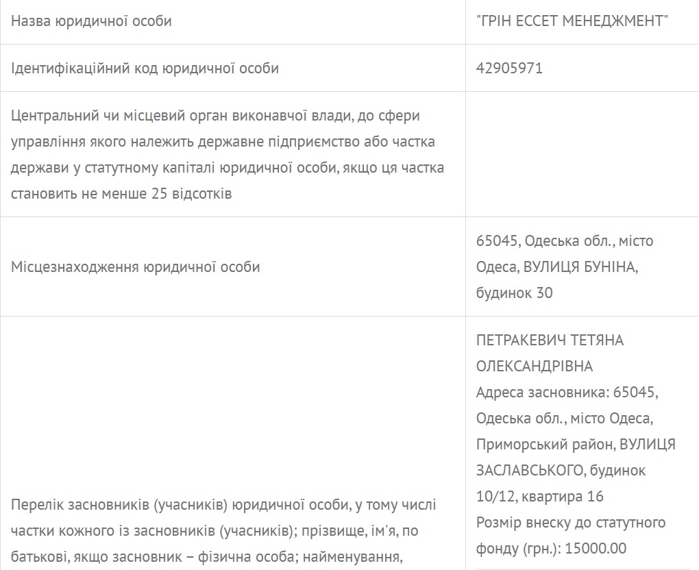 Как следует из обозначения на контейнерах их установила компания «Гринн Ессет Менеджмент». По данным единого реестра юридических лиц эта фирма зарегистрирована в Одессе в марте 2019 года с уставным капиталом в 15 тысяч гривень. Конечным бенефициаром является Татьяна Петракевич.