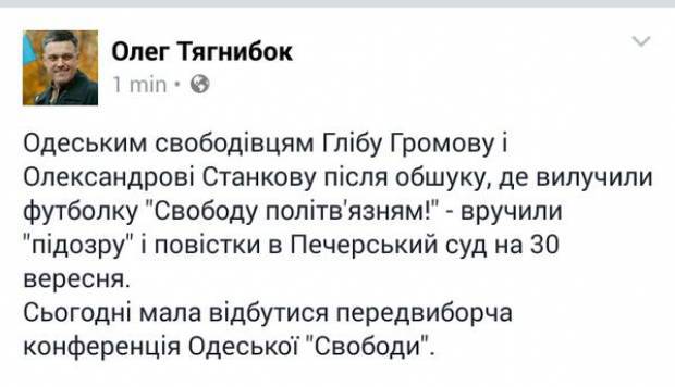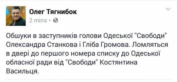 Сотрудники милиции провели обыски в квартирах членов ВО «Свобода» в Одессе перед началом партийной конференции этой политической силы, на которой планировалось выдвижение кандидатов в областной совет