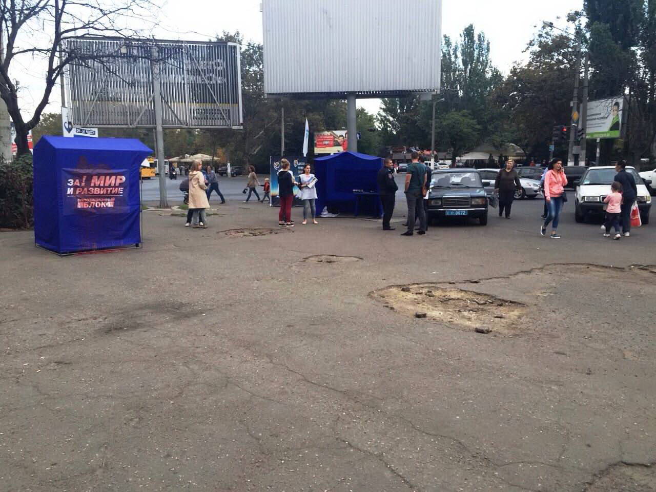 Агитаионные палатки Оппозиционного блока все аще в Одессе подвергаются атакам неизвестных, а раньше нападавшие четко демонстрировали свою политическую позицию и общественно-политическую принадлежность