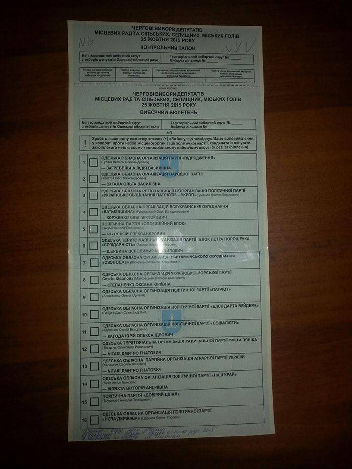 Одесская облТИК утвердила образец избирательного бюллетеня