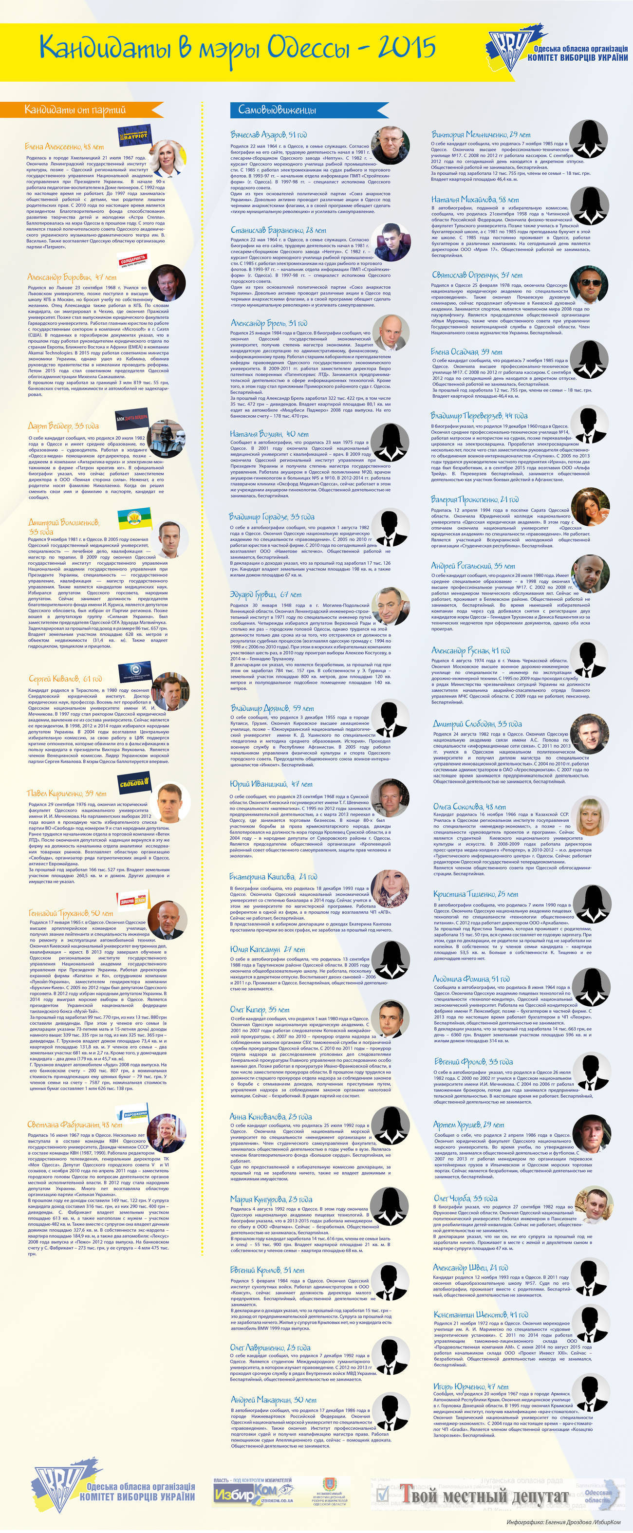 Комитет избирателей Украины и сайт ИзбирКом публикуют подробную иформацию обо всех 42 кандидатах на должность Одесского городского головы