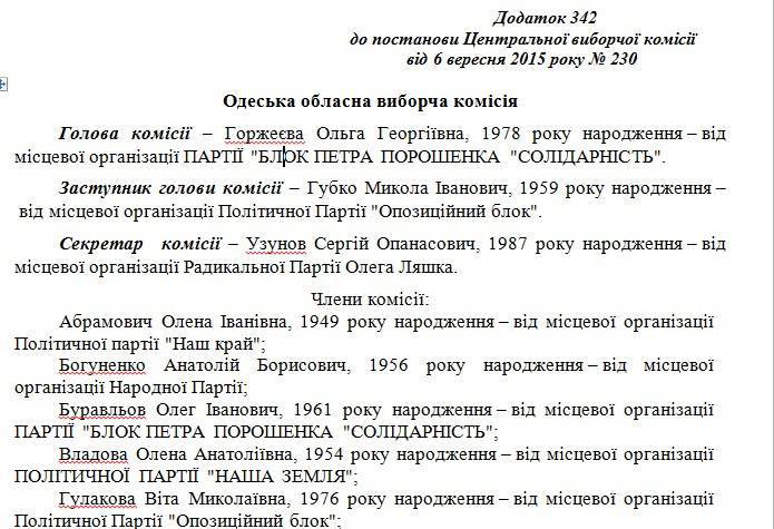 Центральная избирательная комиссия опубликовала список членов избирательных комиссий в Одессе и Одесской области, а также городов областного подчинения