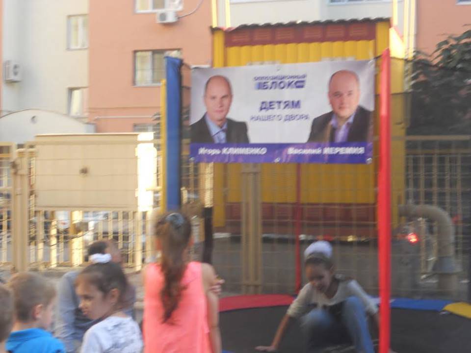 Как сообщает постоянный наблюдатель Одесской областной организации Комитета избирателей Украины, мероприятие "украшали" баннеры еще не зарегистрированных, но уже ведущих агитацию потенциальных кандидатов в депутаты Одесского горсовета от "Оппозиционного блока" В. Иеремии и И. Клименко.