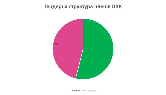 При этом среди членов окружкомов - 83 женщины и 71 мужчина, или в процентном соотношении 54 на 46% в пользу женщин.