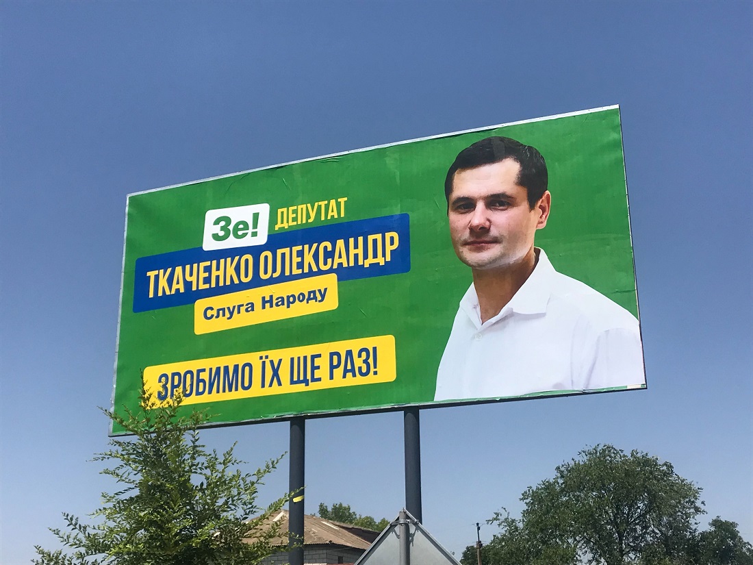 Так, днем 1 июля ОПОРА обнаружила билборд на въезде в город Татарбунары с изображением кандидата в народные депутаты от партии «Слуга народа» Александра Ткаченко и надписью: «Зе! Депутат Ткаченко Александр. Слуга народа. Сделаем их еще раз!». На борде не указаны исходные данные и, соответственно, невозможно установить, осуществлялось ли их изготовление за счет избирательного фонда кандидата.