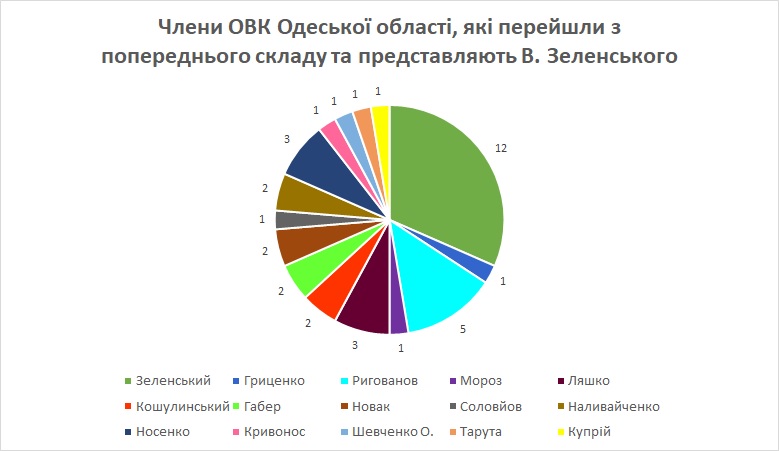 Среди членов окружкомов, которые перешли к В. Зеленскому, первое место заняли представители Руслана Ригованова - пятеро, далее следуют представители Олега Ляшко и Сергея Носенко - по трое.