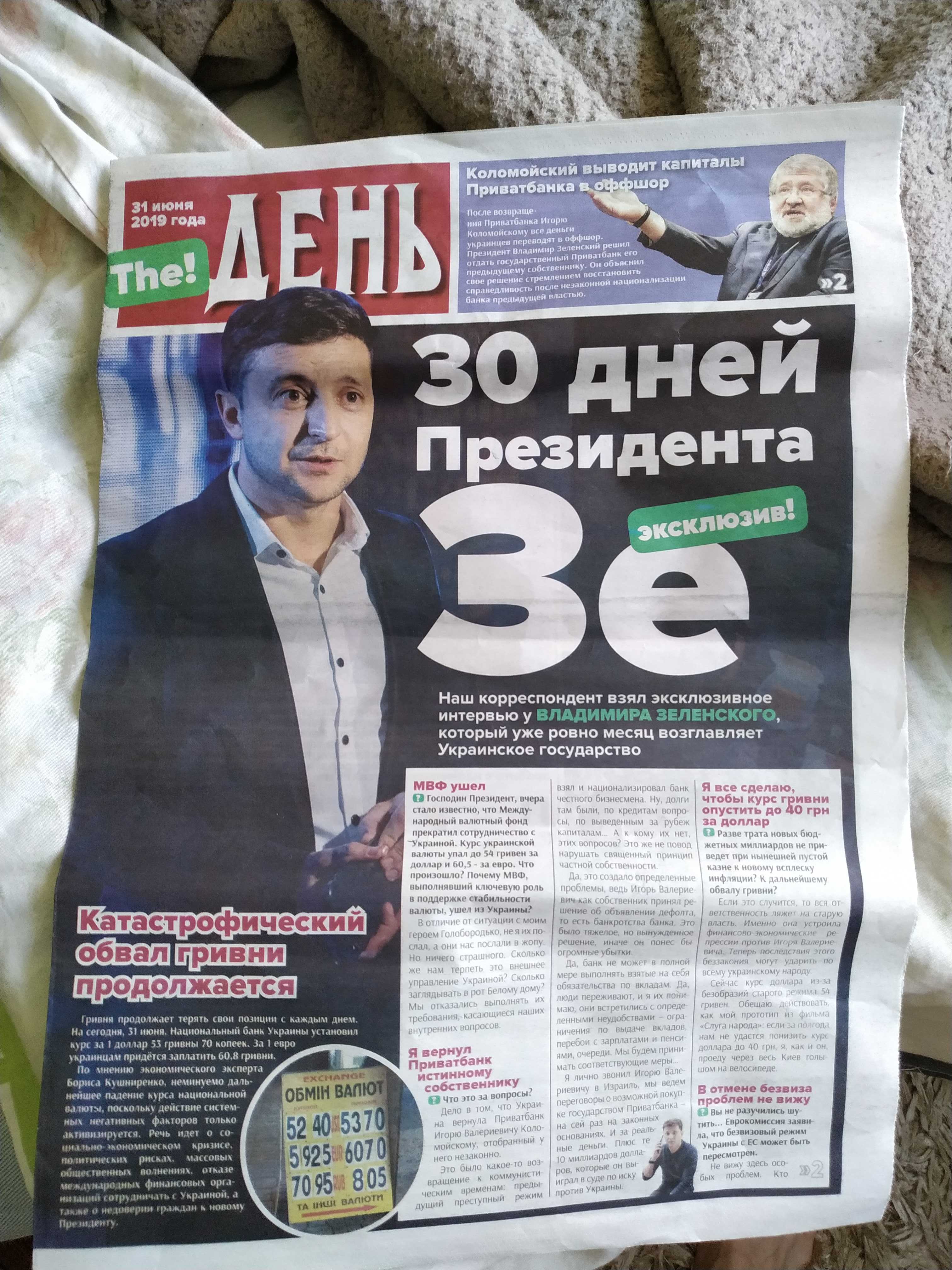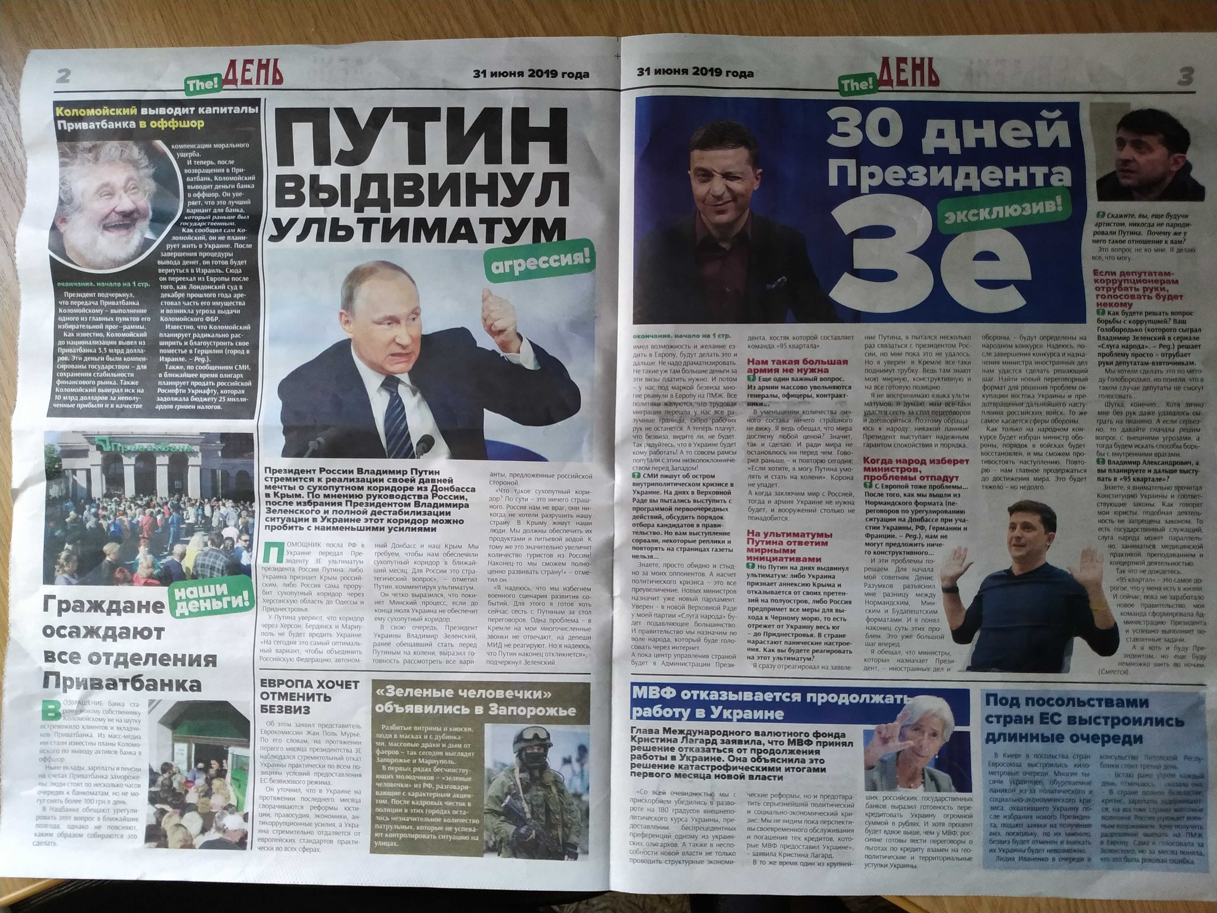 Так, в газете «The День» содержатся материалы о том, что «простые люди против «слуги народа» и о том, что президент Российской Федерации будто бы поддерживает избрание Владимира Зеленского главой украинского государства.
