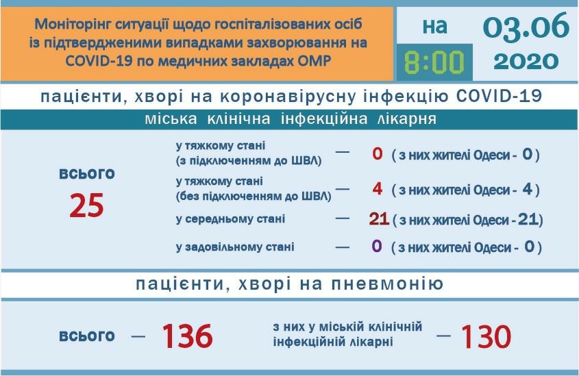 В тоже время в пресс-службе Одесского горсовета сообщили, что женщина скончалась 2 июня в реанимационном отделении городской клинической инфекционной больницы. Она была госпитализирована в инфекционную больницу с лихорадкой и подозрением на COVID-19. В инфекционной больнице ей сделали два ПЦР-теста - 21 мая и 26 мая, оба результата были отрицательными. Учитывая наличие тяжелого сопутствующего заболевания, для дальнейшего лечения больную перевели в областную клиническую больницу, где был взят повторный ПЦР на COVID-19. 1 июня был получен положительный результат ПЦР и женщину в очень тяжелом состоянии с тяжелой сопутствующей патологией (желудочное кровотечение) перевели в инфекционную больницу.