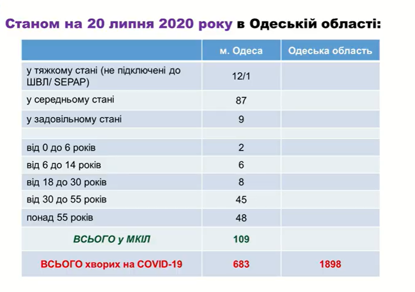 По состоянию на 20 июля, в Одесской области зарегистрировано 2 тыс. 581 случай коронавирусной инфекции, из них 683 - в Одессе.
