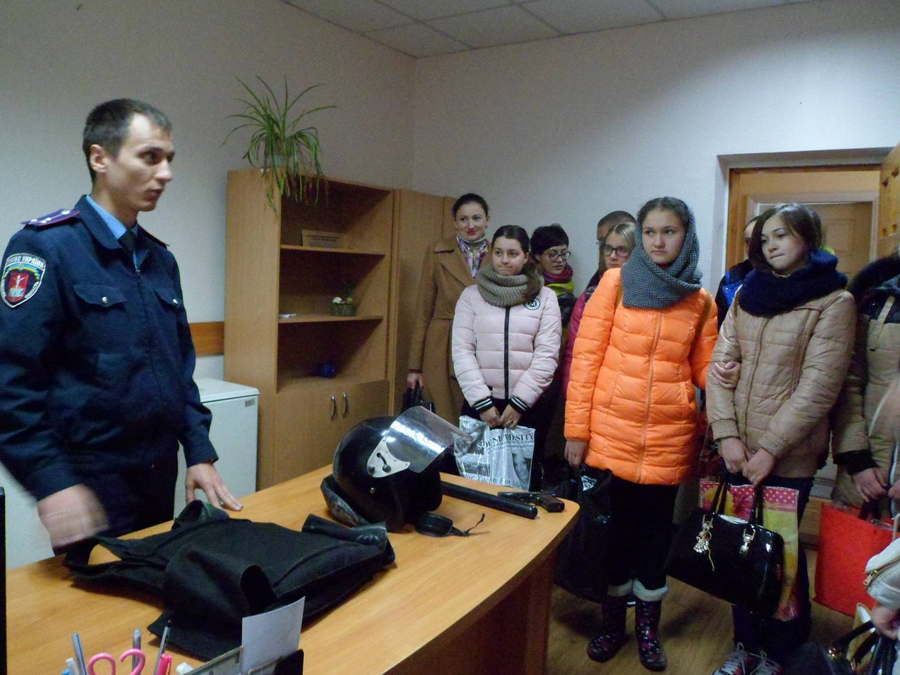 "Сотрудник полиции Иван Попадюк показал гостям дежурную часть, кабинеты сотрудников и продемонстрировал специальные средства и учебные образцы оружия, которыми пользуются современные копы. Он также рассказал о том, какие требования полицейских являются обязательными для выполнения гражданами во время их задержания или привлечения в качестве понятого или свидетеля", - прокомментировал событие и.о. начальника Подольского ОП Николай Пищанский.