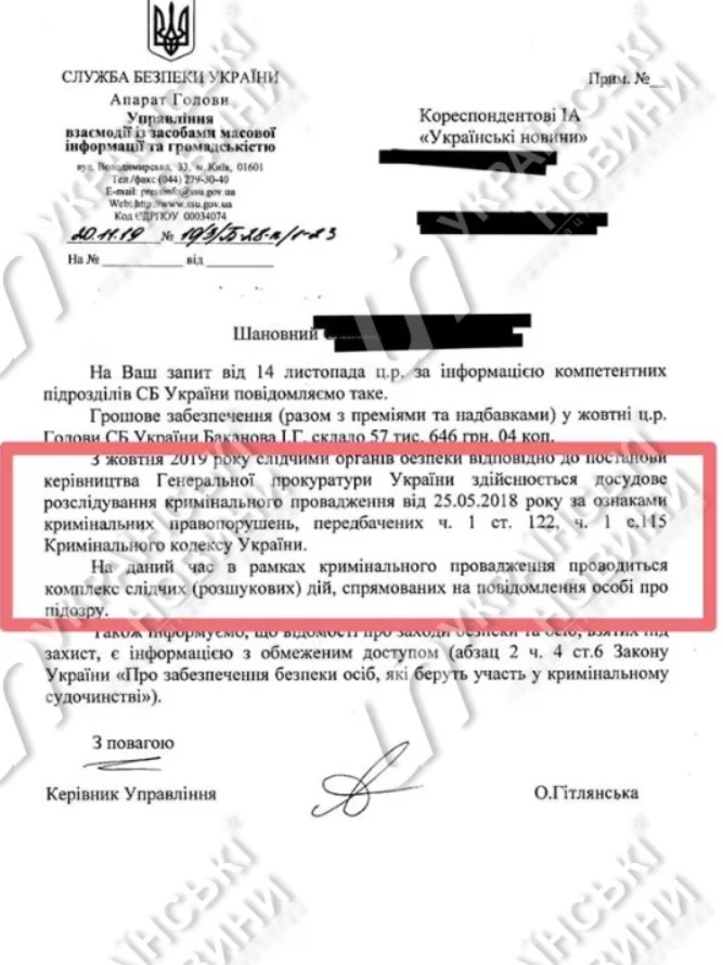 Об этом говорится в ответе СБУ на запрос «Українських Новин».