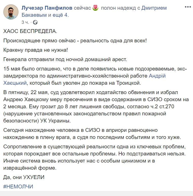 Запустила флешмоб журналистка Елена Ротари, которая на своей странице в Facebook написала, что Хаецкого хотят сделать виноватым, чтобы ушли от наказания другие фигуранты дела.