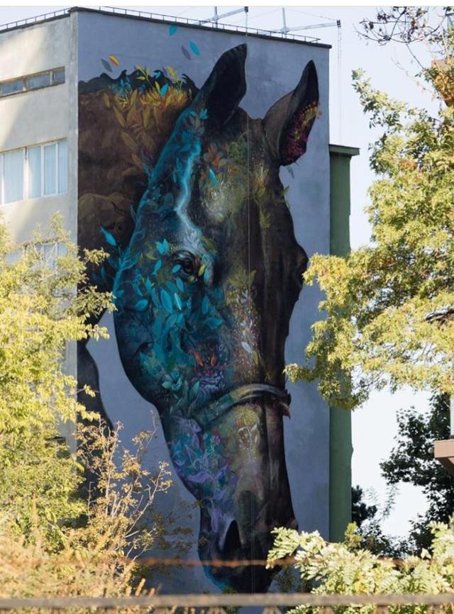 Как отмечает «Думская» в видении художника, лошадиная голова символизирует баланс двух стихий — воды и земли. Именно поэтому звериная морда как бы разделена на две половины: одна украшена яркими цветами и растениями, а вторая подводными обитателями.