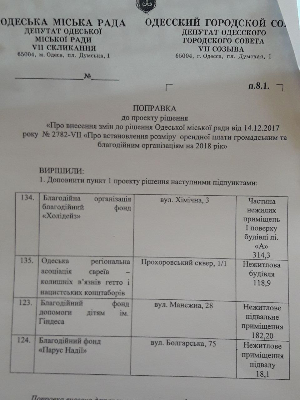 Интересно и другое: бюджетная комиссия не выносила вопрос на сессию. Это сделала рабочая группа по проверке использования помещений, расположенных на территории города Одессы и, таким образом, о проекте решения было неизвестно широкой общественности и журналистам.