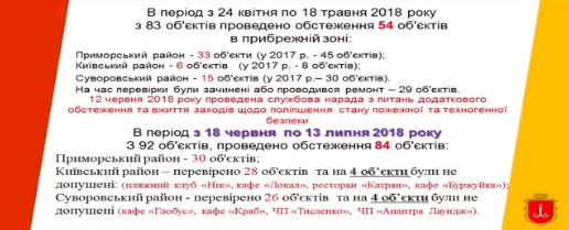 Кроме того, были обследованы объекты в прибрежной зоне на предмет дополнительного забора воды. Выяснилось, что в Приморском районе есть два причала, где можно осуществлять дополнительный забор водя для пожарных автомобилей. Кроме того, на всем одесском побережье есть 9 пожарных гидрантов, 7 из них - в Приморском районе и 2 – в Киевском.
