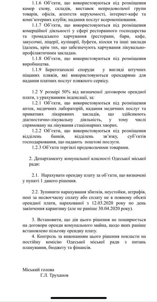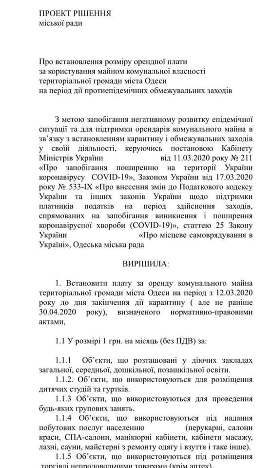 Напомним, бюджет Одессы из-за введения карантина за два месяца недополучит более 150 миллионов гривень, и департамент финансов уже готовит проект урезания расходов, которые не являются первоочередными. Отметим, что в ходе аппаратного совещания 23 марта Одесский городского голова Геннадий Труханов поручил своему заместителю Олесю Янчуку рассмотреть необходимость снижения платы за аренду твердого покрытия для предпринимателей города.