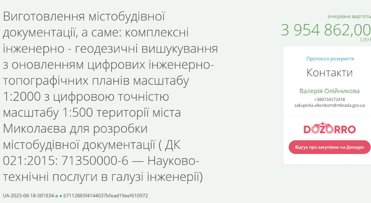 Исполком Николаевского горсовета заказал обновление цифровых инженерно-топографических планов центральной части города. Стоимость работ составляет 3,95 миллиона гривен.
