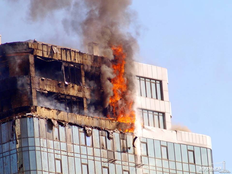 Как рассказали в пресс-службе ГСЧС, о пожаре спасатели узнали благодаря звонку от граждан в 13:10. Пожар охватил периметр здания и продолжал распространяться. К приезду пожарных огонь бушевал уже на 1 тысяче квадратных метров. Чтобы справиться с огнем спасатели задействовали 20 единиц техники и 80 человек личного состава, однако тушение серьезно усложнялось тем, что у спасателей Одессы просто нет необходимого оборудования для ликвидации пожаров на таких высотах. Горели верхние этажи здания, а лестницы пожарных не достигают нужной высоты. В результате локализовать пожар удалось только в 17:40, а полностью ликвидировать в 17:57. Вероятной причиной пожара, по мнению экспертов ГСЧС стала неосторожность рабочих при сварке металлических конструкций.