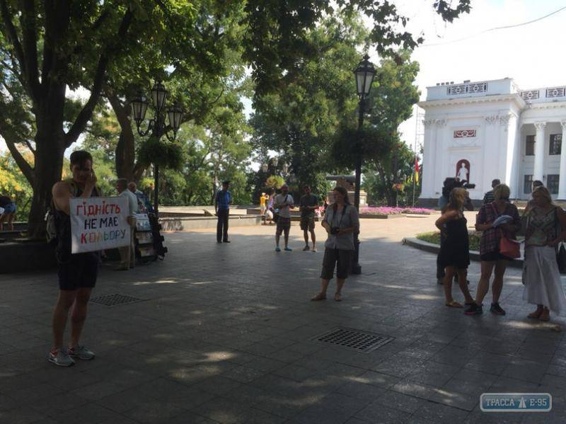 15 августа состоялись одиночные пикеты нескольких активистов ЛГБТ-движения с радужными флагами и плакатами у стен Одесского городского совета и вдоль Приморского бульвара против запрета проведения «Марша равенства».
