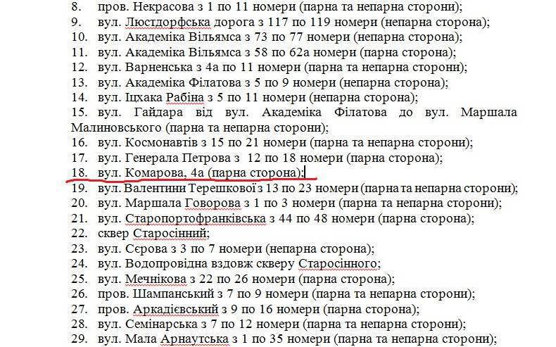 Об этом в группе ВО «Свобода» в Facebook сообщил экс-председатель Одесской городской ячейки этой партии Сергей Солтасюк. По его словам, согласно приложению к решению горсовета, оператор парковки на улице Космонавта Комарова, 4а имеет право на 90% льготы.