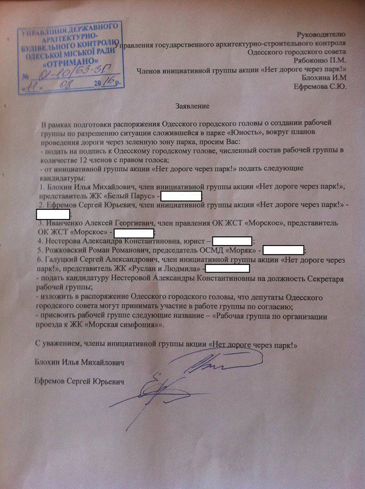 Что касается рабочей группы, о которой говорил мэр Одессы Геннадий Труханов на одном из аппаратных совещаний, то ее работа, по словам Ильи Блохина, начнется, скорее всего, в первых числах сентября. На данный момент готовится распоряжение мэра о создании группы. В группу могут войти депутаты горсовета, а секретарем ее должен стать представитель общественности. Также общественники настаивают на том, что группа должна называться «Рабочая группа по организации проезда к жилому комплексу «Морская симфония»».