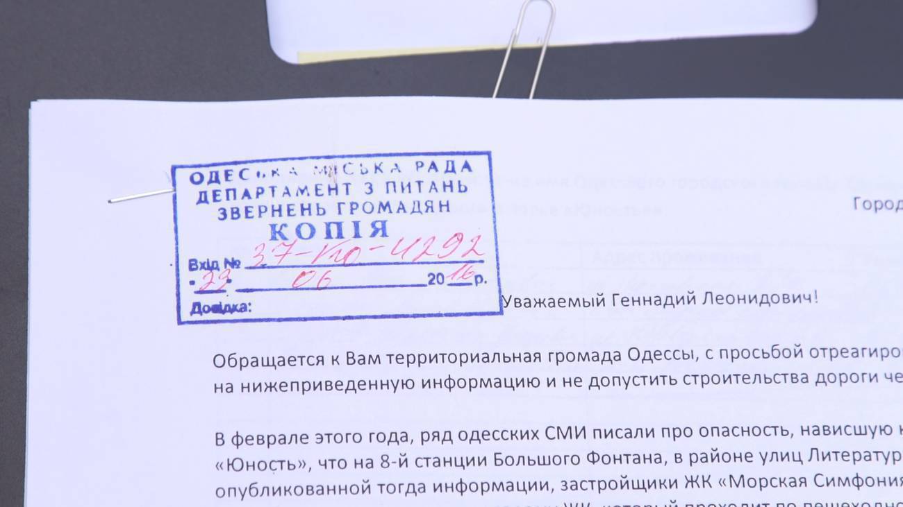 В четверг, 23 июня, инициативная группа акции "Нет дороге через парк" передала обращение на имя одесского городского головы с 864 подписями жителей Одессы. Об этом ИзбирКому сообщили активисты.