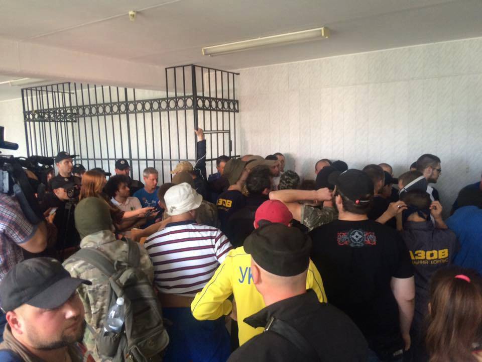 После того, как решение было зачитано, в суде началась потасовка между нескольки десятками представителей патриотических организаций, в частности, "Правого сектора", "Самообороны", "Совета общественной безопасности", ГК "Азов", и силовиками. Активисты заблокировали суд, а полицейские, в свою очередь, заблокировали активистов. Противостояние длилось до ночи, причем активисты объявили по городу "полную мобилизацию". В итоге Евгения Мефедова привлекли к ответственности за мелкое хулиганство - ругань в суде - по заявлению присутствующих в суде граждан и отправили в изолятор временного содержания на трое суток.