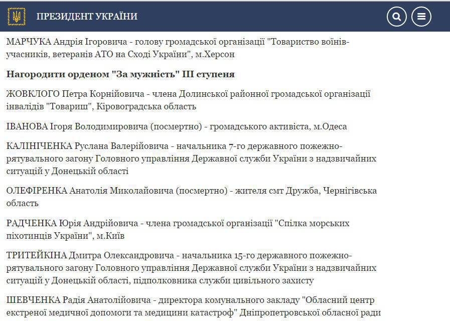 Погибший 2 мая 2014 года в Одессе в ходе массовых потасовок активист со стороны «Евромайдана» Игорь Иванов представлен к награде посмертно орденом «За мужество» ІІІ степени.