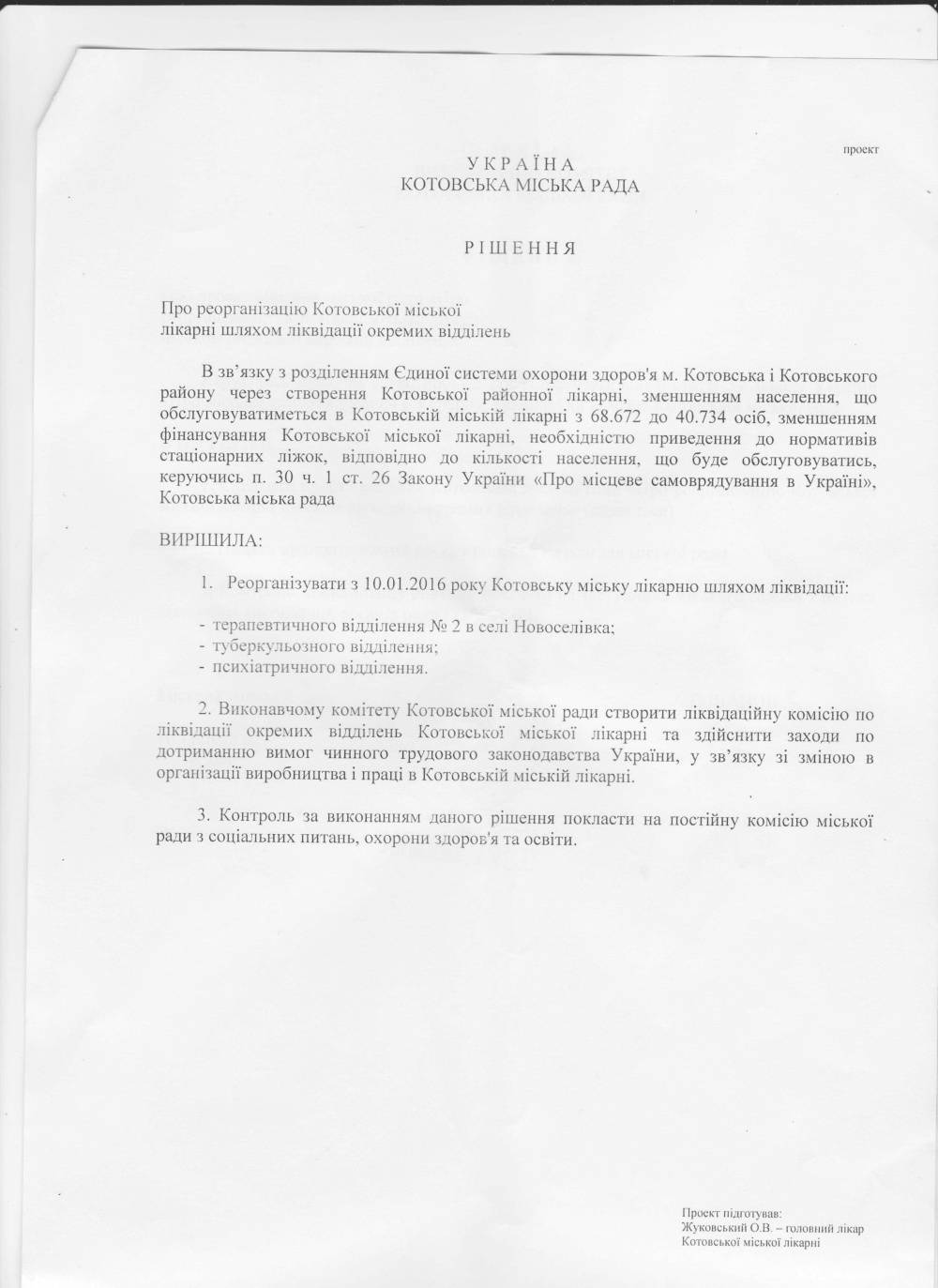 Исполком Котовского горсовета сократил в ноябре 2015 года два отделения городской больницы - противотуберкулезное и терапевтическое, которые были своего рода домом престарелых.