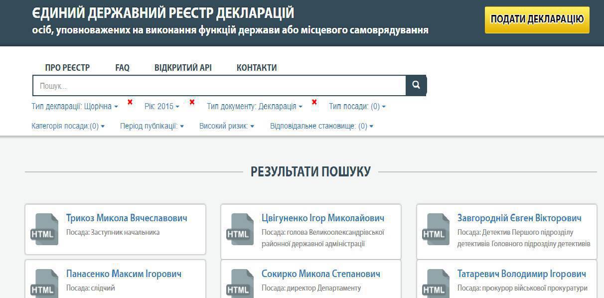 Среди них - декларации судей, прокуроров, следователей, глав районных советов.
