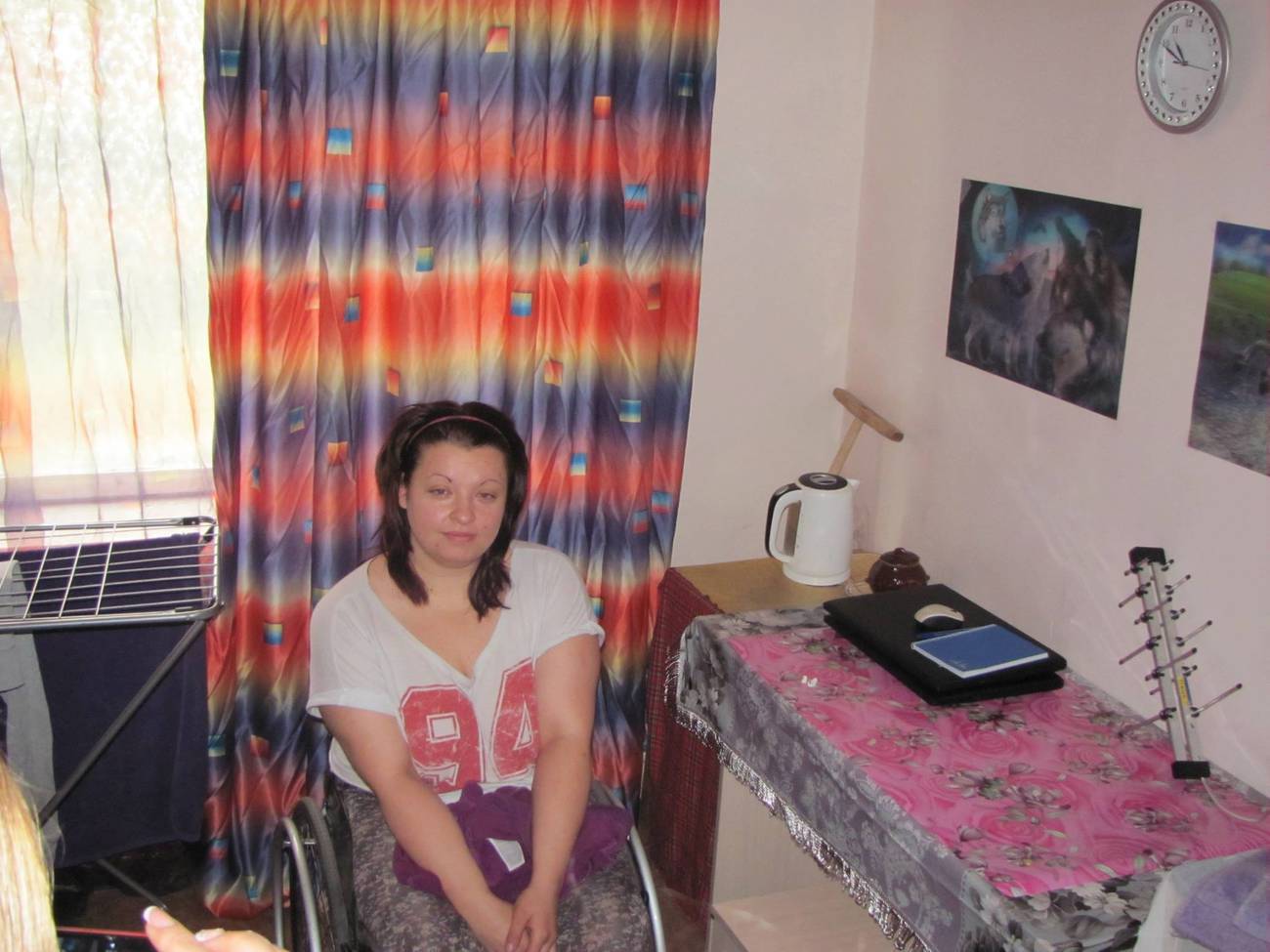 После выселения из санатория «Куяльник» в Одессе внутренне перемещенные лица с инвалидностью были вынуждены искать новое жилье. 25-летняя колясочница Рита Халявина потратила два месяца на безуспешные поиски квартиры. Поэтому девушка уже почти две недели проживает в центре для социально незащищенных на поселке Котовского в Одессе.