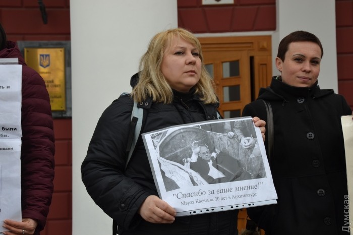 На Думской площади собралось около 15 активистов. Всем желающим они предлагали подписать заявление на имя городского головы Геннадия Труханова, в котором перечисляются нарушения архитектурно-градостроительного совета, а также указано требование об увольнении главного архитектора города и роспуске нынешнего градсовета.