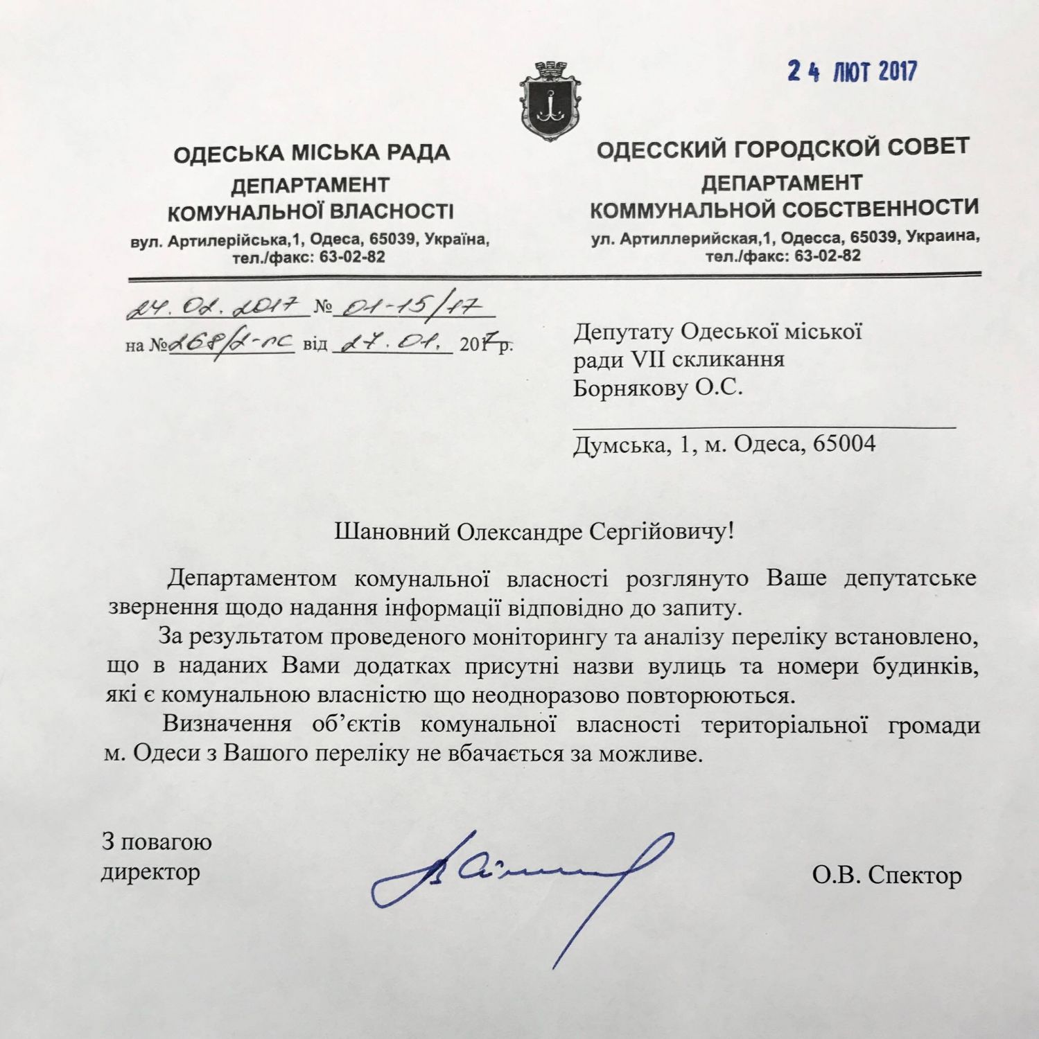 В организации отметили, что после обнародования онлайн-карты коммунальной собственности Одессы команда депутата Одесского городского совета Александра Борнякова провела расследование, в результате которого и выявила, якобы, факт сокрытия объектов департаментом.