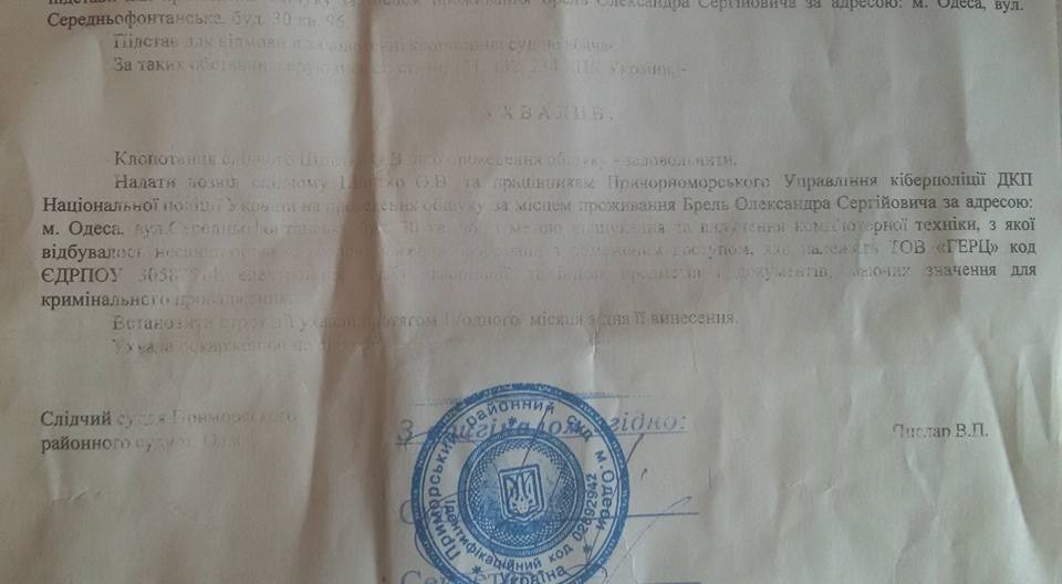 «Друзья. Только в моей квартире провели обыск по делу, которое вроде бы связывают с публикациями Стопхаба о незаконности деятельности приближенной к высокопоставленным чиновникам Одесского горсовета компании «ГЕРЦ». Забрали 3 компьютера, жесткие диски, флешки», - написал он.