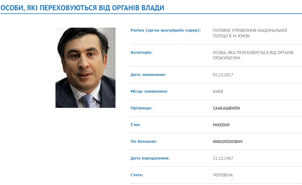 Генеральная прокуратура Украины объявила в розыск экс-главу Одесской областной администрации Михеила Саакашвили.