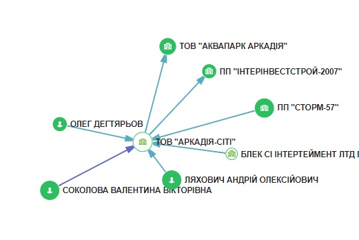 Согласно открытым данным из реестров, у компании - много учредителей: житель города Днепра Андрей Ляхович, одесское ЧП "СТОРМ-57", лондонская фирма "Сити Групп Девелопмент ЛТД", еще одна лондонская фирма "Блек Си Интертеймент ЛТД". А конечным бенефициарным собственником является некий Олег Дегтярев - также житель столицы Великобритании.
