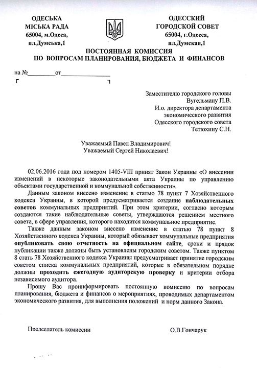 Глава бюджетной комиссии Одесского горсовета требует публикации отчетов городских КП об их деятельности