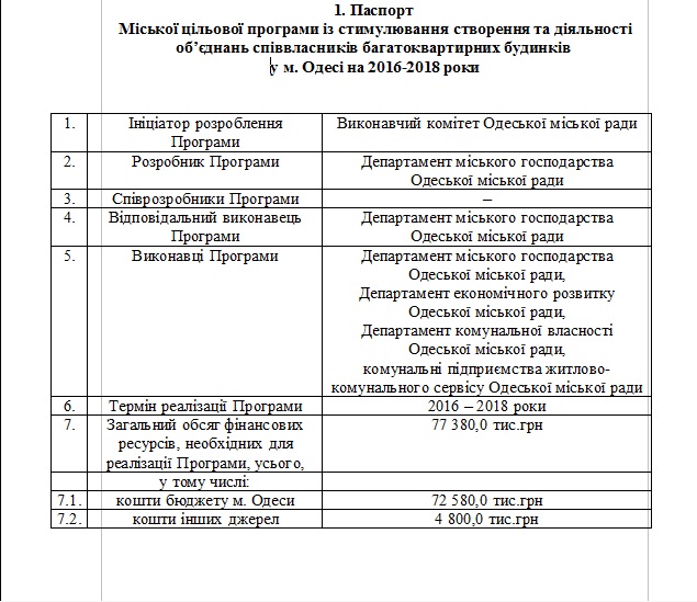 Исполнительный комитет Одесского городского совета в ходе внеочередного заседания сегодня 25 апреля поддержал проект решения «О внесении изменений в Городскую целевую программу по стимулированию создания и деятельности объединений совладельцев многоквартирных домов в Одессе на 2016-2018 годы, утвержденную решением Одесского городского совета от 16 марта 2016 года № 453-VІІ».