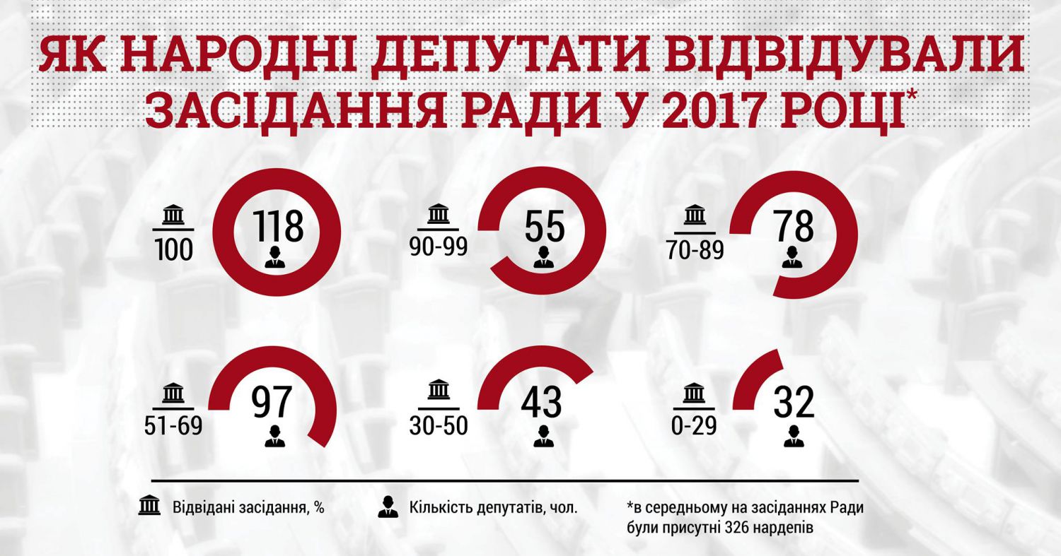 Только треть депутатов (118 из 422) посетили все заседания Рады.