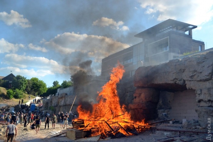 Отметим, что 10 июня активисты патриотических организаций Одессы снесли заграждения, закрывающие доступ на пляж «Хмельницкого-Саакашвили», на котором в последнее время шли строительные работы. В ходе демонтажа была небольшая потасовка с представителями охранного агентства, однако полиция оперативно погасила конфликт и задержала самых активных участников драки. В результате инцидента активисты собрали деревянные конструкции уже оборудованные на пляже строителями и сожгли.