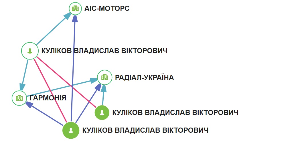 Компания «Радиал-Украина» зарегистрирована в Киеве, и ее основателем в едином реестре юридических лиц, физических лиц-предпринимателей и общественных формирований значатся ООО «Гармония» и Вячеслав Куликов.