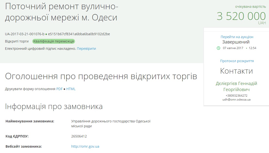 Один из тендеров предусматривает ремонт 4 тысяч 850 квадратных метров дорог и при ожидаемой стоимости закупки в 3 миллиона 520 тысяч гривень, предполагаемый победитель торгов получит 3 миллиона 485 тысяч. В тендере участвовали две компании ООО «СК «Автострой» и ООО «БВК «Пик-Строй». Договор планируется заключить с ООО «СК «Автострой».