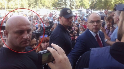 Напомним, что этот человек в штатском непосредственно руководил построением сотрудников полиции в оцеплении вокруг Максима Степанова, а также все время находился возле него, отталкивая журналистов и участников акции. На просьбу представиться он заявил, что является «гражданином Украины», но удостоверение сотрудника полиции предоставлять отказался. После того, как участники митинга возмутились и попытались выяснить его личность, В. Бузило спешно скрылся в здании ОГА.
